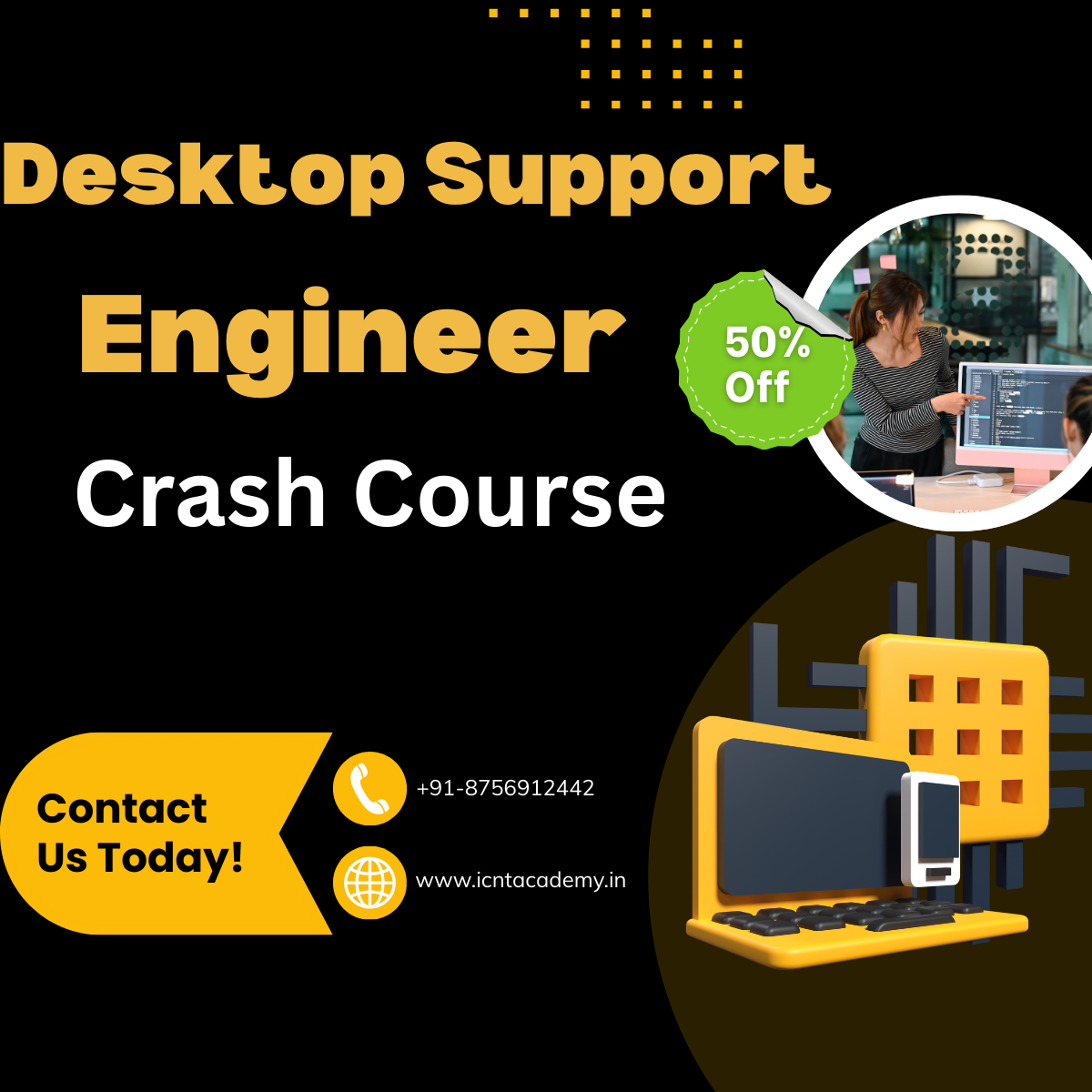 ICNT ACADEMY offers affordable, professional instruction in cutting-edge technology. Our mission is to help professionals and students achieve their career goals by providing high-quality technical education in Hindi .